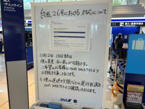 まずはANAの窓口へ向かい、昨日乗る予定だった便に乗れなかった理由を説明して今日の振り替え便の手続きをしてもらいました。