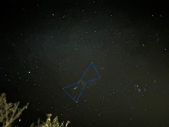 しゅうさんはいつもどおり早朝4時30分に目覚めて5時前に自宅を出ると、西の空にオリオン座がバッチリ見えました。