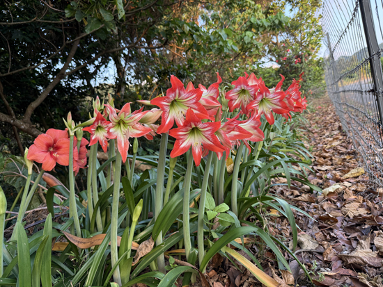道ばたのアマリリスやコンロンカもきれいに咲いています。